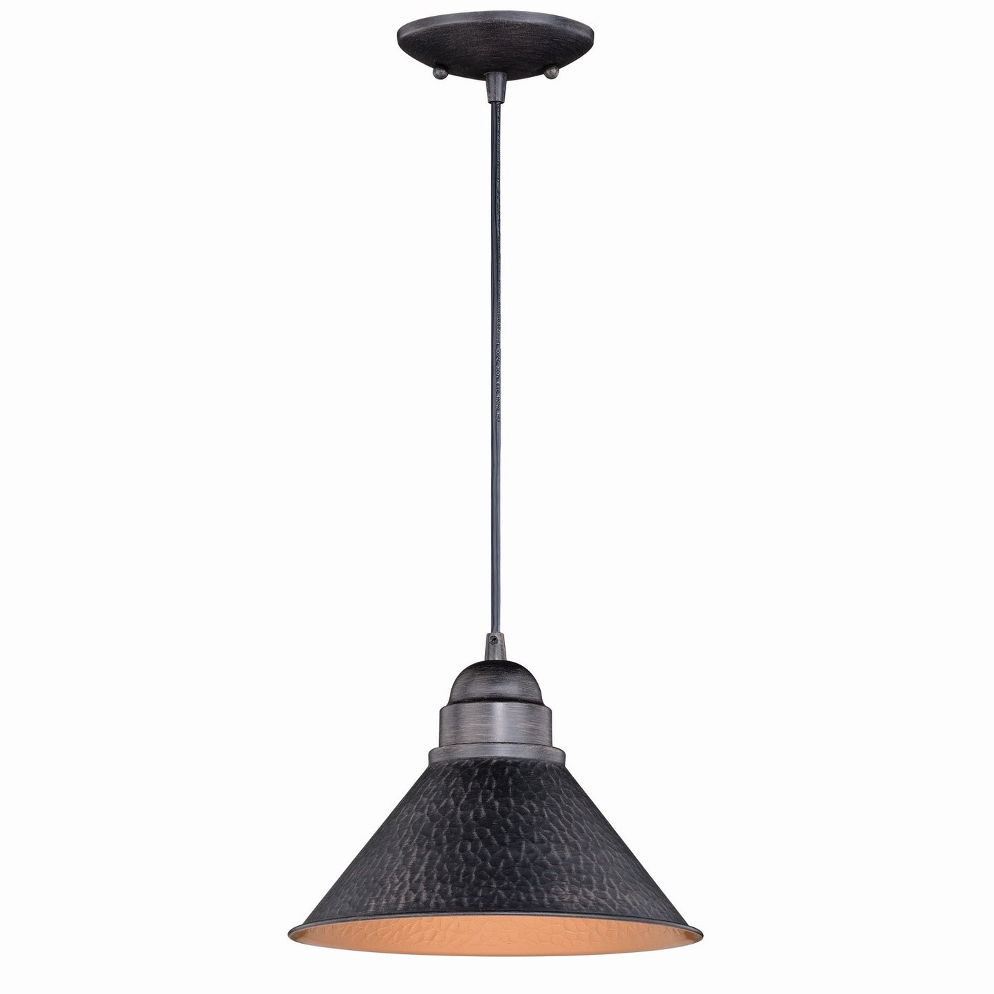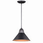 Designed with stately, yet rustic sophistication, the Outland collection is a solid choice for your outdoor space. The textured, aged-iron finish gives this barn light a warm and inviting elegance, and the gold finish inside shade adds to the charm. This fixture is dark-sky compliant and will complement any industrial, cottage, modern country, or farmhouse style home. This outdoor pendant is ideal for your porch, entryway, or any other area of your home.